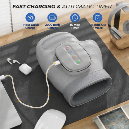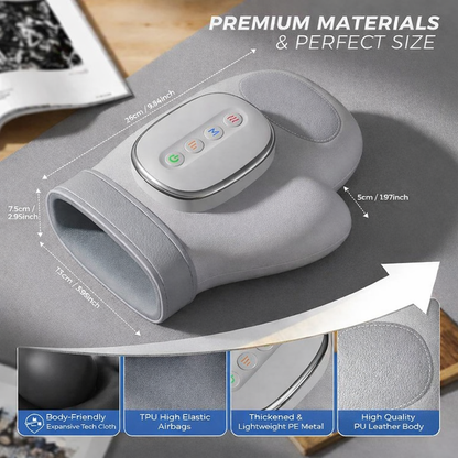 It uses air compression technology to gently wrap and massage your hand, helping relax muscles and improve comfort.